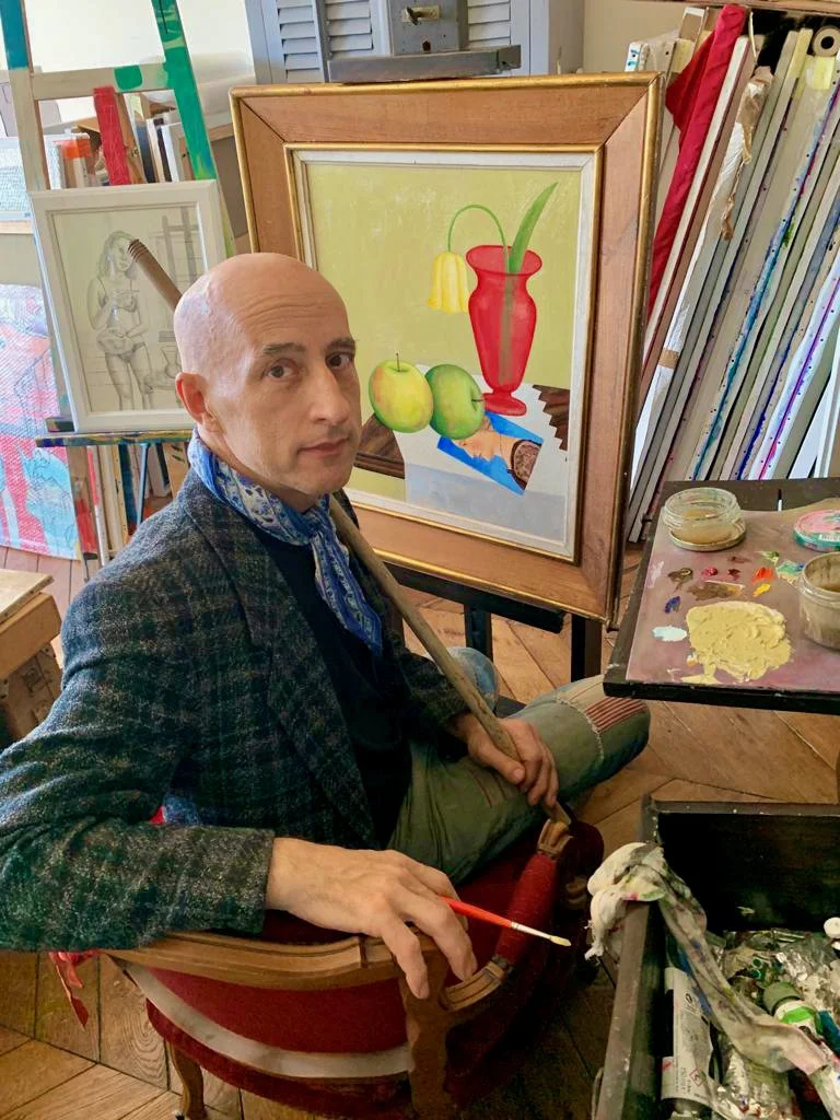 Once a year we share personal studio time together—either in Paris over coffee and paintings, or virtually through a private video visit.