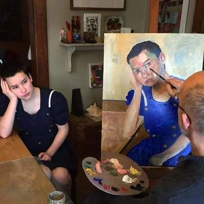 This was a live painting session that yielded a beautiful portrait of this adolescent girl who had just cut her hair very short for the first time. Sometimes everything just works. (I love those times.)